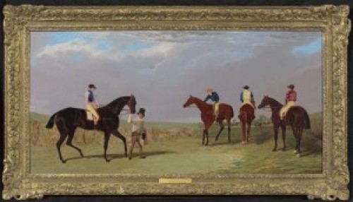 In Doncaster Herring earned his living as a painter of coach insignia and inn signs and his contact with a firm owned by a Mr Hill led to his employment as a night coach driver, a surprisingly glamorous profession where speed and skill were much admired. Herring graduated to be driver of the prestigious High Flyer which plied between York and London. Herring’s spare time was spent playing the clarinet, composing music and painting portraits of horses for inn parlours; he became known as the ‘artist coachman’. His talent was quickly recognised and he soon found himself painting hunters and racehorses for the gentry, among them Charles Stanhope and the Hon. Edward Petre. He first exhibited at the Royal Academy in 1818 and in 1825 was commissioned by the Doncaster Gazette to paint the winners of the St Leger, which were engraved. This series and the series of Derby winners which followed in 1827 disseminated Herring’s work to a wide public. Around this time Herring seems to have taken lessons from the sporting artist Abraham Cooper (1787-1868) to address the technical shortcomings of having been self-taught.