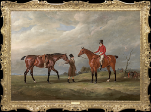 In 1830, Herring left Doncaster for Six Mile Bottom, Newmarket, where he spent three years before moving to Camberwell, London. In London Herring got into financial difficulties and was rescued by William Taylor Copeland, who commissioned many paintings including designs used for Copeland Spode bone china. His companion Ann died in 1838 and Herring subsequently married Sarah Gale (1794-1882/3). In 1840-41 Herring visited Paris by invitation of the Duc d’Orléans, for whom he painted several racehorses. In 1845 Herring was appointed Animal Painter to HRH the Duchess of Kent. There followed a commission from Queen Victoria, who was to remain a patron for the rest of his life. Herring spent the last twelve years of his life at Meopham Park near Tonbridge, Kent, where he lived as a country squire. He now broadened his subject matter and painted agricultural scenes and narrative pictures, as well as his hunting, racing and shooting pictures.