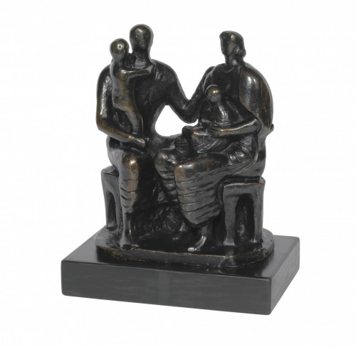 Moore was inspired by the family group from the early 1940s, though it has been customary to attribute his interest in the subject to the longed-for birth of his only child Mary in 1946. Following the end of the Second World War, Moore’s Family group sculptures took on even greater significance as symbols of familial strength, protection and nurturing. The family naturally evolved from the artist’s Mother and Child theme, which had appealed to Moore because of its significance throughout the history of art, for the emotive relationship it represented and for its potential for formal development between figures.