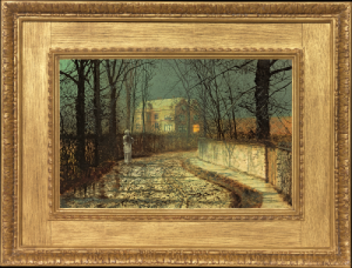 By 1870, Grimshaw had become successful enough to move to Knostrop Old Hall, a seventeenth century mansion about two miles from the centre of Leeds, which featured in many of his paintings. He rented another home near Scarborough which he called ‘The Castle by the Sea’, towards 1876. Grimshaw suffered a serious financial disaster in 1879 and had to leave his house at Scarborough. He moved to London and rented a studio in Chelsea, leaving his family at Knostrop. He returned to Knostrop, where he died in 1893. Several of his children, Arthur Grimshaw (1864-1913), Louis H Grimshaw (1870-1944), Wilfred Grimshaw (1871-1937) and Elaine Grimshaw (1877-1970), became painters.