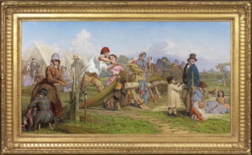 Born in Leeds, the son of an ex-policeman, Grimshaw first took up painting while he was employed as a clerk for the Great Northern Railway. He married his cousin Frances Theodosia Hubbarde in 1858 and by 1861, he had abandoned his job in order to devote all his time to becoming an artist. In his early work, John Atkinson Grimshaw was influenced by John Ruskin’s creed of ‘truth to nature’ and adopted the detailed Pre-Raphaelite technique of the Leeds painter, John William Inchbold. He was also fascinated by the relatively new art of photography and may have used a camera obscura in developing his compositions.