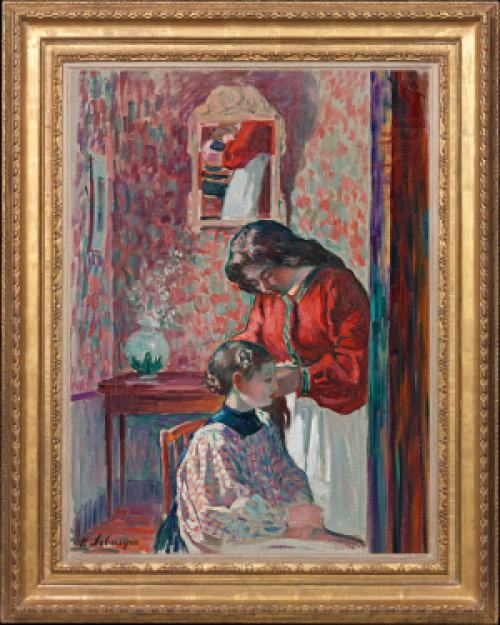 Loiseau studied at the Ecole des Arts Décoratifs and in 1889 at the studio of the landscape painter Fernand Quignon. Loiseau rented a room in a workers’ tenement, La Maison du Trappeur in the Rue Ravignon, Montmartre, which was later to become famous as the Bateau-Lavoir. He became acquainted with Jean-Louis Forain and Adolphe Willette, but his shy, nature-loving personality had little in common with the raucous bohemians of the Parisian art scene. In 1890 he went to Pont-Aven, staying at the famous inn run by Marie-Jeanne Gloanec, where he was befriended by Henry Moret and Maxime Maufra. Although working in a personal style, Loiseau’s paintings from this period show the influence of the Pont-Aven School in their diagonal compositions, shortened perspectives and anti-panoramic fields of view. Returning to Paris in 1891, Loiseau exhibited for the first time at the Fifth Exhibition of Impressionist and Symbolist Painters. He showed paintings at the gallery of Le Barc de Boutteville in Rue Le Pelletier, where two works were bought by the celebrated Rouen collector and friend of Monet, François Depeaux.